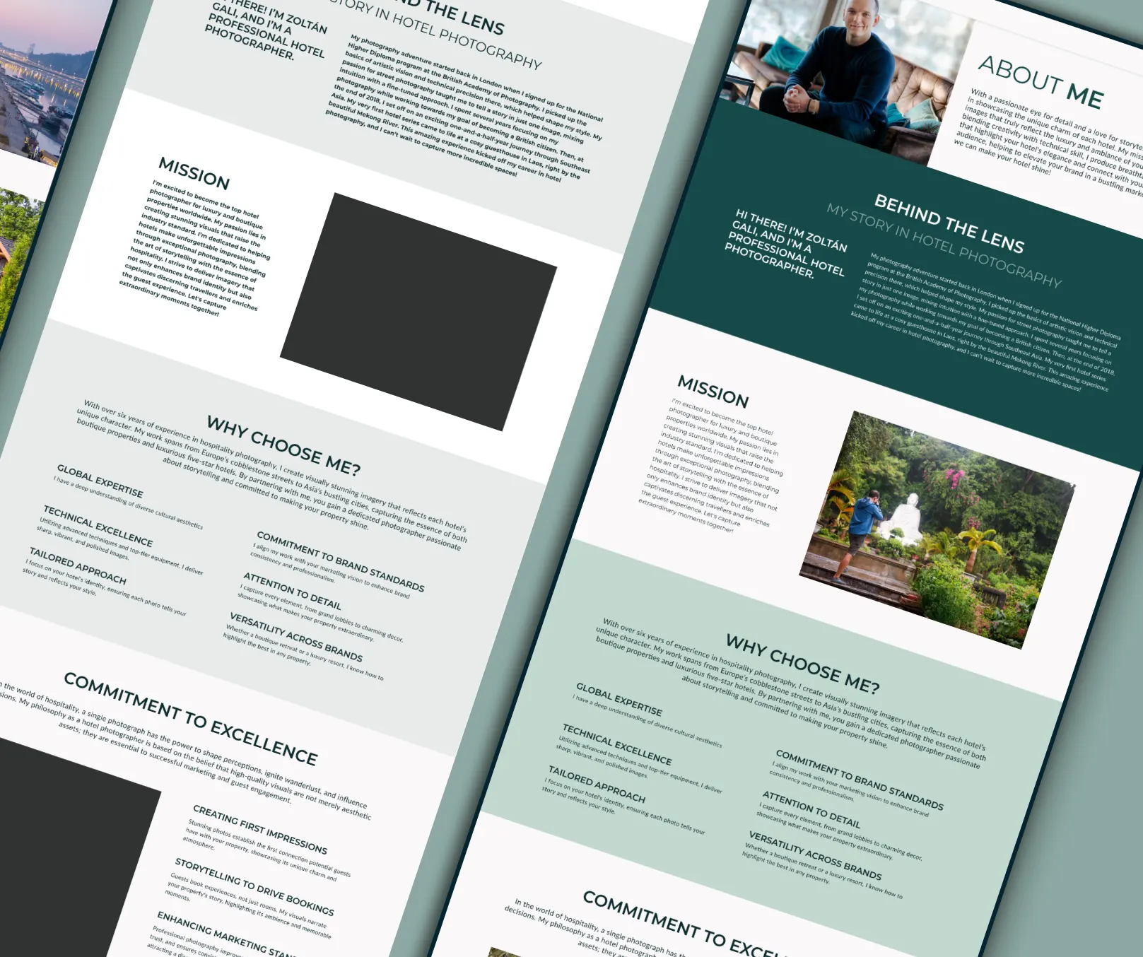 Amikor Zoli megkeresett, azonnal egyértelmű volt: a munkáihoz méltó, kifinomult és időtálló megjelenésre van szüksége. A luxusszállodák világát dokumentáló képei magas színvonalat és eleganciát sugároznak – ezt kellett vizuális formába önteni. A feladat nem pusztán egy logó megalkotása volt, hanem egy olyan átfogó arculat és digitális jelenlét kialakítása, amely hitelesen tükrözi a fotós stílusát, és prémium élményt nyújt az érdeklődőknek.